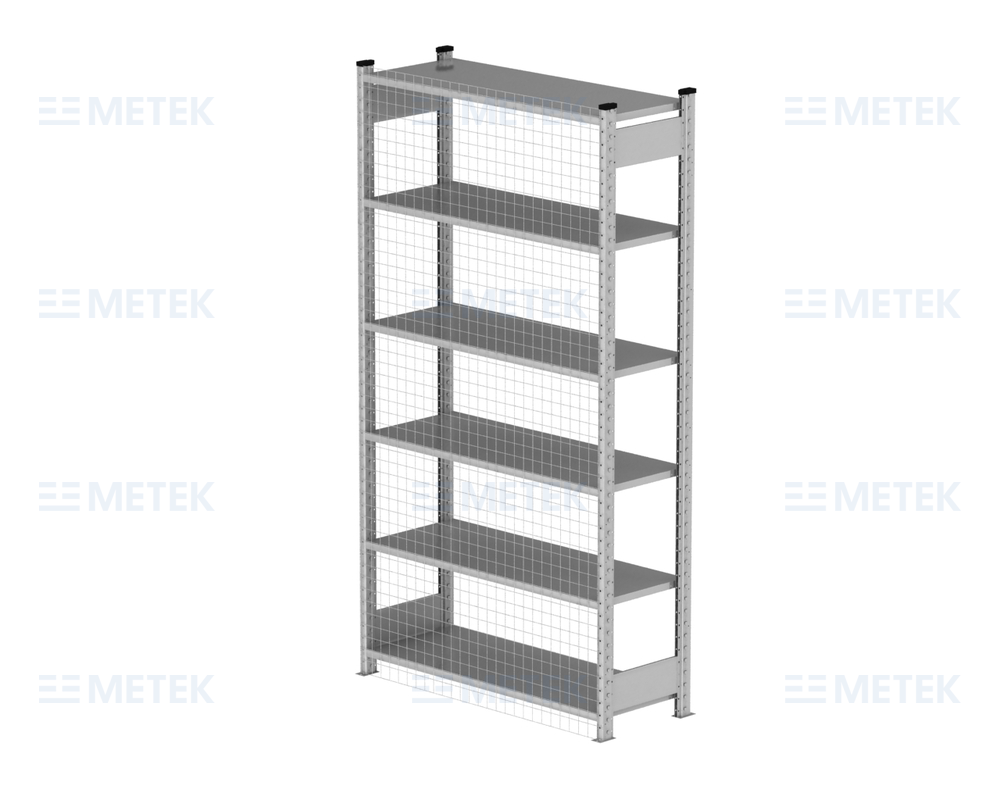 Панели представляют собой решетку с разным размером ячейки, она легко крепится в специальные пазы стеллажей. Покрытие - оцинкованная сталь, порошковый полимер.