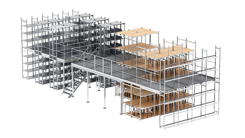 Мезонин — многоярусная быстросборная металлическая конструкция, образующая пешеходные и грузовые уровни, обеспечивая максимально эффективное использования площади помещения. Подобные конструкции получили распространение на складах, производственных и торговых площадях.